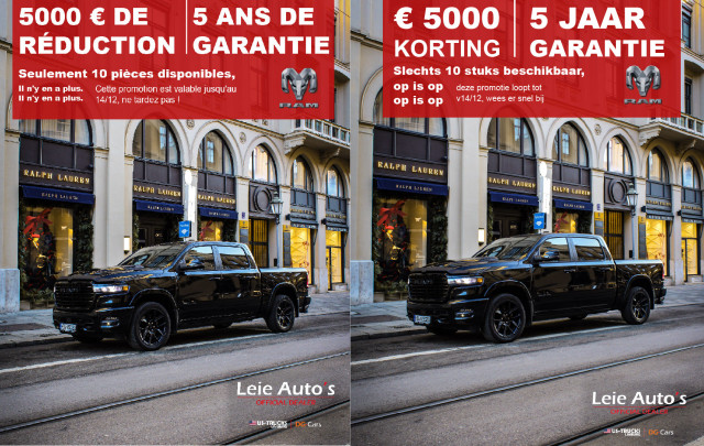 Nous vous présenterons des modèles DODGE & RAM et répondrons à toutes vos questions au niveau d'achat, des formules de leasing ou autres sujets. Saviez-vous d’ailleurs que nous sommes distributeur officiel des marques DODGE & RAM pour le Brabant Wallon ?
